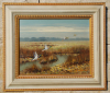 Sehr schöne jagdliche Szene, in Öl ausgeführt in vorwiegend blau-grün-braun gehaltenen Farben. Viele Ausstellungen machten ihn in der gesamten Bundesrepublik bekannt und brachten ihm beachtliche Erfolge und Anerkennung.