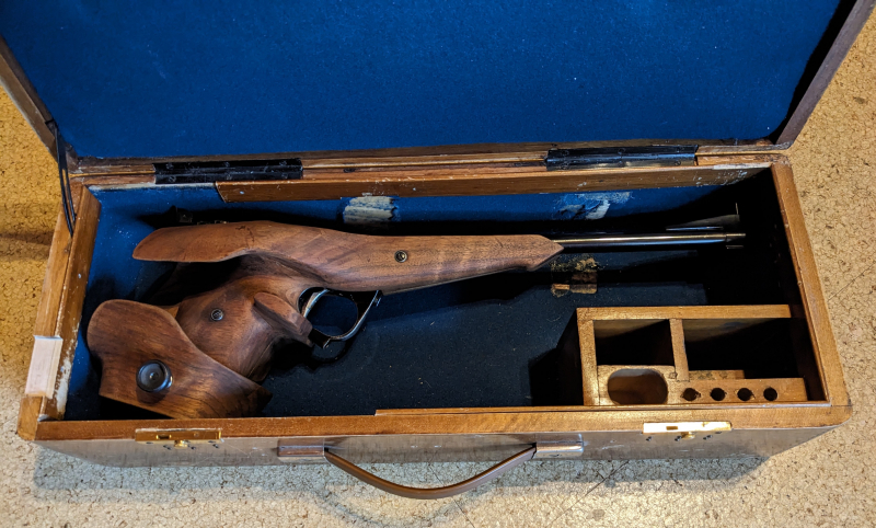 Zum Verkauf steht eine Isch-1, das ist eine selten zum Kauf angebotene Freie Pistole aus Russland. Die Isch-1 ist das Vorgängermodel der legendären TOZ-35! Diese Waffe ist ein voll funktionstüchtiges und schönes Sammlerstück! Die Pistole selbst, ist in einem dem Alter entsprechenden guten Zustand, siehe Bilder. Im Angebot sind kleine Raritäten, eine Ersatzkimme und zwei Korne in unterschiedlichen höhen enthalten. Am Koffer wurde vom Vorbesitzer leider arg rum gebastelt, mit etwas Geschick kann man ihn bestimmt wieder schön herrichten. Den Versicherten Post-Versand übernehme ich. Privatverkauf, ohne Rücknahme und Garantie.