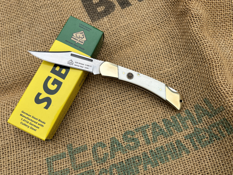 In der SGB-Linie unserer Übersee-Vertretung „PUMA Knife Company USA“ finden sich auch viele Nachbauten klassischer PUMA-Modelle früherer Jahrzehnte wieder, die wir in Solingen nicht mehr produzieren. Einige dieser besonderen Stücke bieten wir nun auch unseren nationalen Kunden an. Alle Messer der SGB-Serie besitzen Klingen aus deutschem Stahl nach DIN 1.4116! Das Modell "warden" ist ein verkleinerter Nachbau unseres berühmten PUMA "game warden" aus der „amerikanischen Serie“ und besitzt auch dessen hervorragende Eigenschaften. Es zeichnet sich neben der funktionalen Clippointklinge durch Messingbacken, weißen Griffschalen aus Knochen und einem zuverlässigen Back-Lock aus.