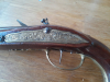 es handelt sich hier um ein hochwertiges Steinschloß-Pistolen-Paar der Herstellers Antoni Haas in München (siehe der neuer Stöckel A. Haas ca. 1720 - ca. 1758). Die Läufe und die Schlösser sind mit dem Namen des Büchsenmachers signiert (siehe Bilder). Die Waffen haben sehr schöne vergoldete Beschläge. Die Läufe sind gezogen (siehe Bilder). Die Schlösser rasten sauber in zwei Stellungen ein. Die Waffen haben eine Länge von jeweils ca. 36 cm. Die Waffen befinden sich in einem absolut sammelwürdigen Zustand.