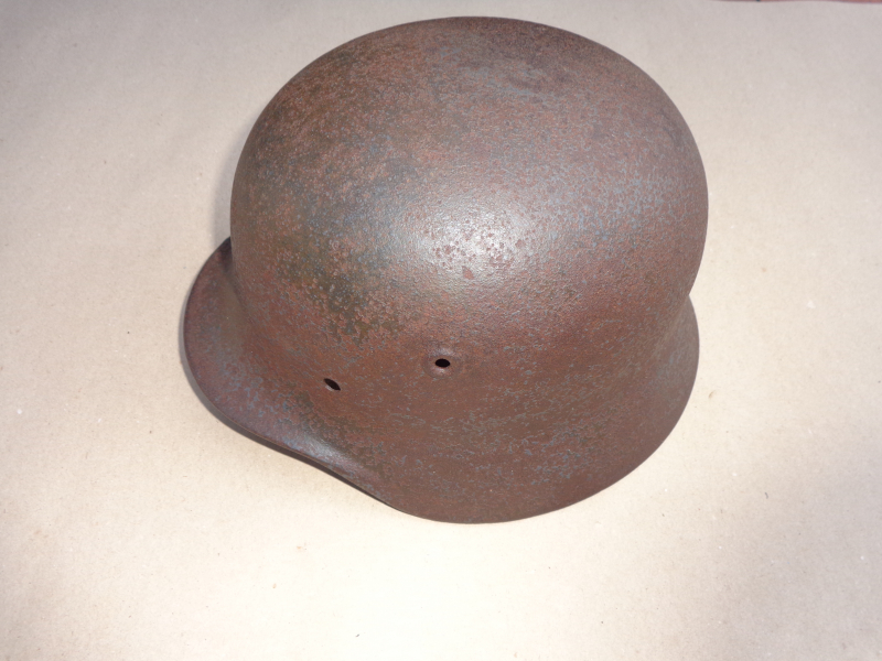 M40 Stahlhelmglocke, Schuppenfund mit Resten der Originalfarbe, LW-Grau, Stempelungen nicht mehr vorhanden, Gr. 62, lediglich vom Schmutz befreit, super Restaurationsbasis oder mit der über 80 Jahre alten Patina so belassen.
