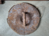Der Lederschild hat einen Dm. von ca. 36 cm. Er hat eine Schnur zum Aufhängen und einen festen Griff auf der Rückseite. Er weist altersbedingte Gebrauchs- und Fehlstellen auf, s. Fotos.