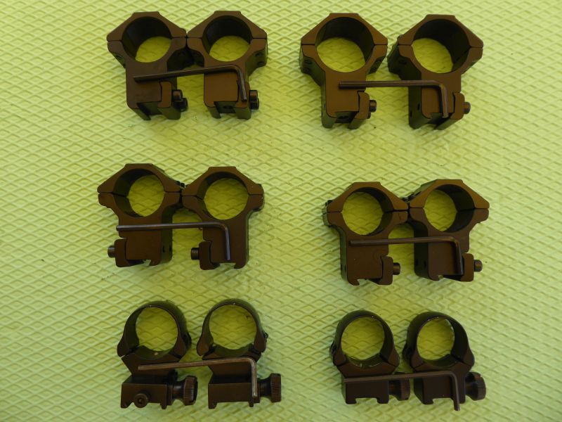 Biete die abgebildeten 6 ZF-Montagen in neuem Zustand für Tubus 25,4mm und 11mm bis 13mm Prismenschiene.Zu jeder Montage gehört ein passender Inbusschlüssel. Bitte Bild begutachten.