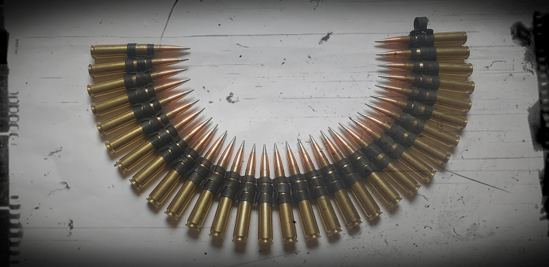Auf dem Gurt sind 30 Dekopatronen montiert,alle Geschosse sitzen fest.
