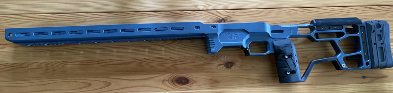 ich verkaufe hier ein MDT ACC ELITE Chassis mit REM 700 SA Footprint in der Farbe Titanium Blue (vgl: https://mdttac.ca/products/acc-elite-chassis-system?variant=52402210930977). Das Chassis ist bisher nicht für das Schießen verwendet worden und durch meinen Meisterbüchsenmacher professionell bearbeitet und montiert worden (Rechnung 2026-03), damit die VOERE VOERE VICTOR 3 – SPORT (ebenfalls ein Rem. 700 SA System) dort hineinpasst. Die Montage von anderen 700 Rem SA Systemen ist natürlich nach wie vor möglich, da lediglich kleine Aussparungen für das VOERE SYSTEM vorgenommen wurden!