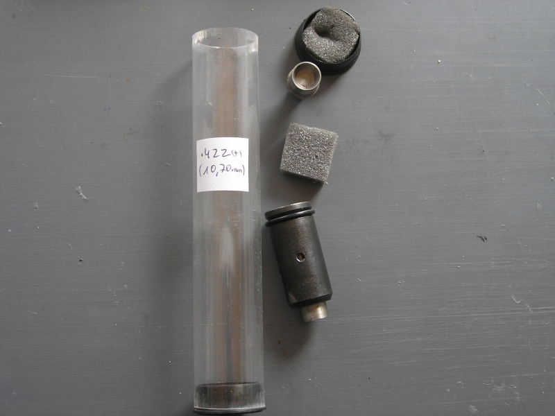 Kalibrier-Matrize für Geschosse .422 lt. Verpackung, nach Messen(10,7mm) i. O. Dazu ein Setzstempel für FN-Geschoss, beide Artikel ohne Hersteller- oder Maßangaben. Stempel lässt sich nach Anföhnen leicht bewegen. Keine Korrosion. Privatauktion ohne Garantie, Gewährleistung oder Rücknahme. Versandkosten innerhalb Deutschlands ohne Inseln. Foreign bidders, please check carefully the shipping costs from Germany(DHL) to your own County to avoid a nasty surprise.