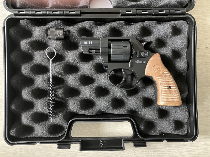 Sie bieten hier auf eine Schreckschusswaffe der Marke Röhm im Kaliber 6 mm Flobert. Der Revolver ist unbeschossen.
