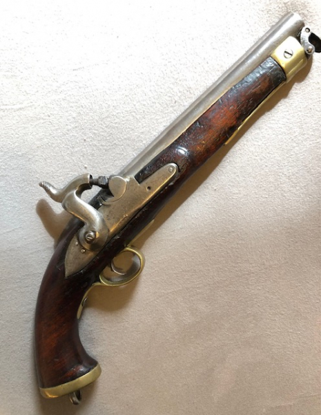 Englische Perkussionspistole mit Regimentstempel im Knauf