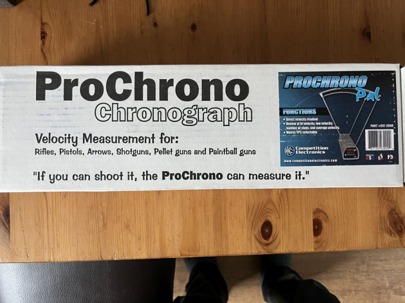 der digitale Chronograph / Geschwindigkeitsmesser ProChrono Pal der Firma Competition Electronics (www.competitionelectronics.com)wurde mal angeschafft, aber nie verwendet.