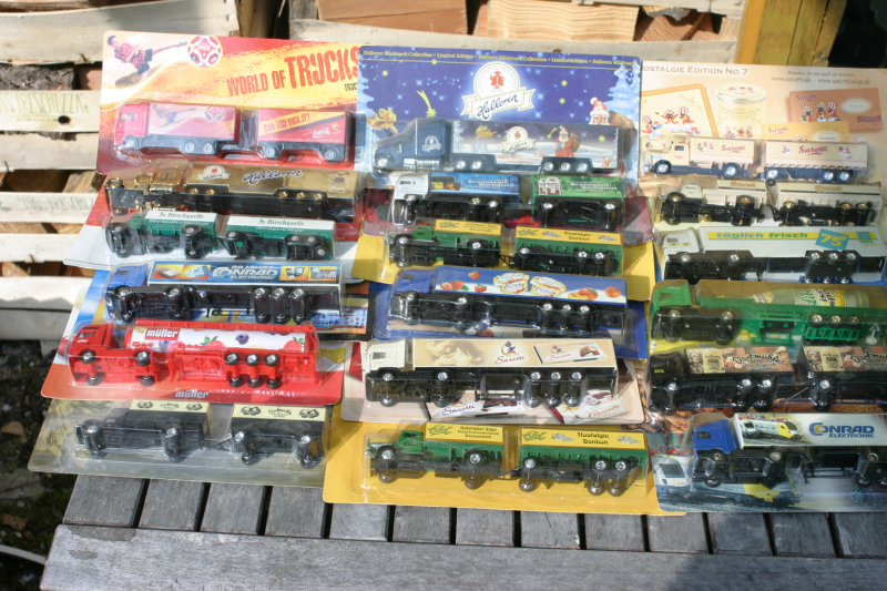 Konvolut LKW-Modelle im Blisterpack wobei die LKW teils aus Metall sind