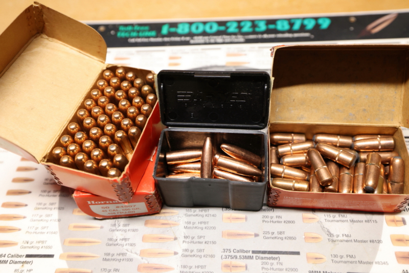 Sie bieten für das Kaliber`458 auf gut 95 Geschosse mit 500grs. Hornady VM, 40 TMR sowie 17 Barnes X mit 450grs.