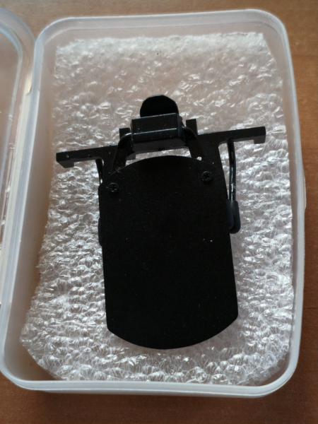 Biete hier eine hochklappbare Abdeckscheibe für das nichtzielende Auge zum anstecken an eine normale Brille an.