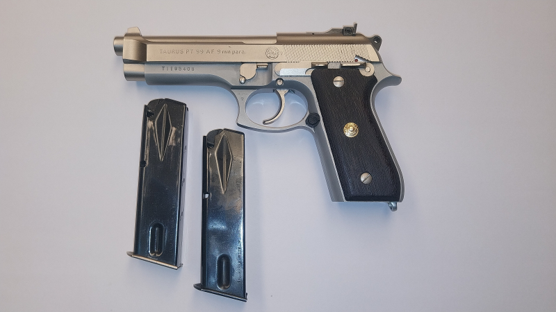 Zum Verkauf steht eine sehr gepflegte Taurus PT 99 AF im Kaliber 9mm Para. Die Pistole besticht durch ihre elegante satinierte Oberfläche sowie besonders schöne Holzgriffschalen, die ihr eine zeitlose und hochwertige Optik verleihen.