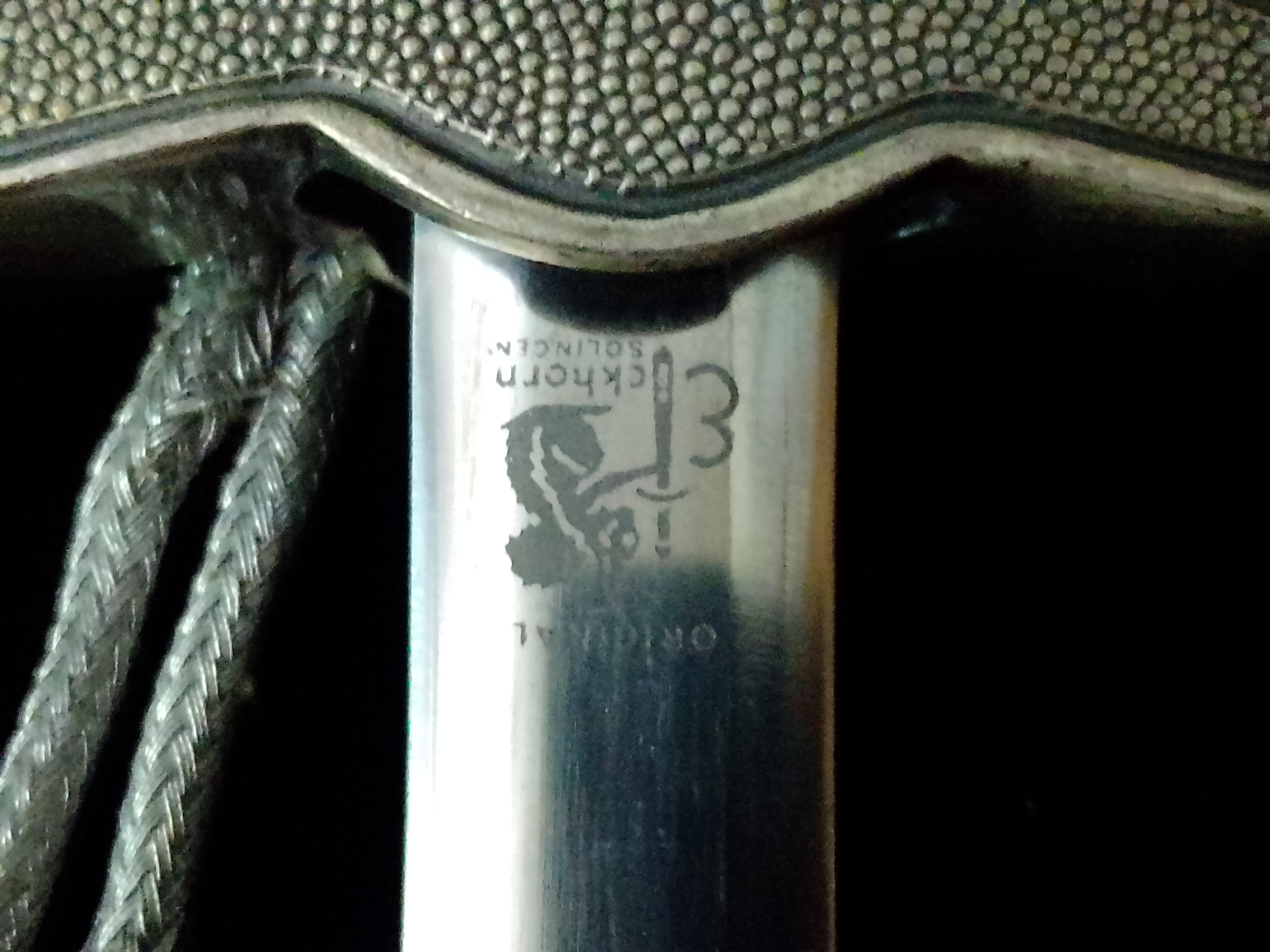 guter nur leicht getragener Zustand weißer Griff mit feiner Griffwicklung ohne jegliche Risse, Stahlklinge mit geätztem Eickhorn Logo,original Portepee am Dolch befestigt.