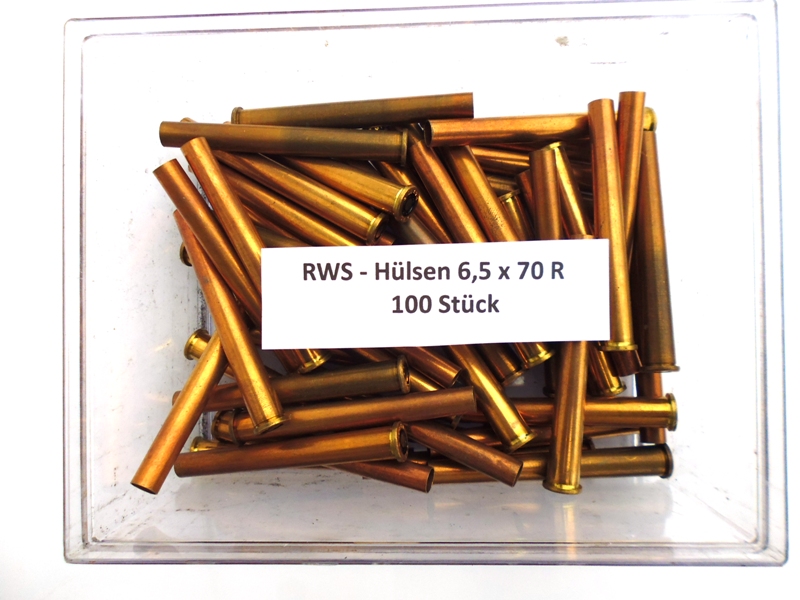 50 Stück RWS - Hülsen 6,5 x 70 R. Die Hülsen sind fabrikneu und mit RWS Zündhütchen (ein Fertigungslos).