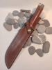 Inklusive Messerscheide aus braunem Leder mit Gürtelschlaufe.