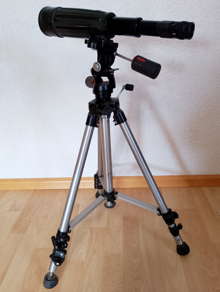 Das Spektiv ist sehr handlich ideal für die Naturbeobachtung und für Sportschützen zur Beobachtung von Treffern auf der Scheibe. Mit dabei ein Profi-Stativ: Kompakt, leicht aus hochwertigem Aluminium und ausziehbar bis ca. 160 cm. Es verfügt über eine Libelle zum ausrichten und einen Schnellverschluß zur Anbringung des Spektives. Das Aufstellen erfolgt mittels Schnellverschlüssen oder dem zentralen Kurbeltrieb. Die Füße lassen sich für einen sicheren Stand auch ausrichten. Alles in Allem ein perfekt abgestimmtes Duo aus Spektiv und Stativ. Leichte Gebrauchsspuren und etwas Patina vorhanden. Zustand siehe auch Bilder. Bilder sind Teil der Beschreibung. Privatverkauf, keine Gewährleistung keine Rückgabe. mit Ihrem Gebot erklären sie sich damit einverstanden. !!!!Verkauf ins Ausland n u r nach vorheriger Absprache möglich!!!!!