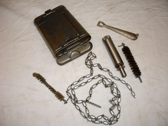 Sie bieten hier auf ein orig. K-98 Reinigungsgerät komplett mit allen Bestandteilen. Die Dose ist mit WaA 243 und Mundlos 1940 gestempelt. Keine Rostnarben, blanke Stellen, Lack noch ca. zu 40 % erhalten. Die Teile zeigen altersbedingte übliche Trage und Gebrauchsspuren auf. Zustand gemäß Fotos. Details und Fragen bitte vor Ablauf der Auktion klären. Farbabweichung durch Blitzlicht möglich. Privatverkauf kein Rückgaberecht und Gewährleistung. Der Bieter erklärt sich durch sein Gebot mit diesen Bedingungen einverstanden. Verkauf und Versand nur innerhalb von Deutschland mit Hermes Paket versichert.