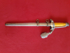 Gelber intakter Griff, Beschläge und Parier (Buntmetall / nicht magnetisch), Adler und HK unbeschädigt. Portepee mit Tragespuren. Vernickelte Stahlklinge mit intakter Spitze / magnetisch mit Herstellerlogo rückseitig H. Kolping - Solingen / leicht rostfleckig. Stoßleder vorhanden. Scheide ohne Dellen, aus versilberten Eisenblech / magnetisch mit 2 geschlossenen Trageringen. Mundblech eingespreßt / nicht verschraubt!