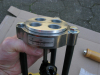 Hier biete ich die Value Turret Presse an, die ich als Ersatz/Ergänzung zu meiner Classic Turret gekauft hatte und nie benutzt habe. Mit jeder Hebelbewegung dreht sich die die Kopfplatte um eine der 4 Stationen weiter. Inzwischen habe ich eine Dillon 550, und die Classic ist selber zur Ersatzpresse geworden. Somit brauche ich den Ersatz für den Ersatz nicht mehr ;-)
