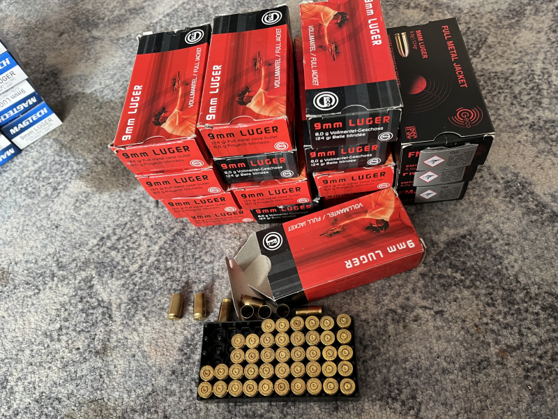Biete 800 Hülsen, 9 mm, Marke GECO. Hülsen wurden 1x als Fabrikmunition verschossen, aufgesammelt, im Tumbler gereinigt und anschließend in die Originalschachteln einsortiert. Zündhütchen sind noch in der Hülse enthalten. Sortenrein jedoch nicht losrein. Boxerzündung. Nicht wiedergeladen. Versicherter Versand mit Hermes. Versand ins EU-Ausland kann erheblich höhere Kosten verursachen, deshalb vorher anfragen. Privatverkauf ohne Garantie, Gewährleistung und Rücknahme. Verkauf unter Ausschluss jeglicher Sachmängelhaftung. PayPal -Freunde- möglich.