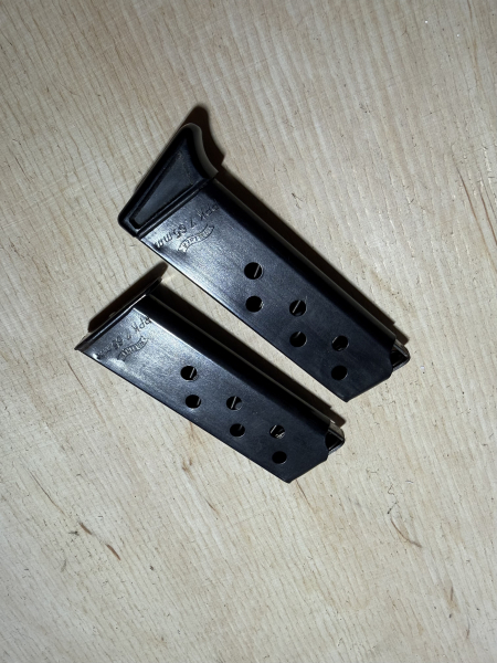 Beide Magazine sind funktionstüchtig, Zustand siehe Bilder. Die Kapazität beträgt jeweils 7 Patronen. Dies ist eine Privatauktion. Daher sind Rücknahme, Garantie und Gewährleistung ausgeschlossen.