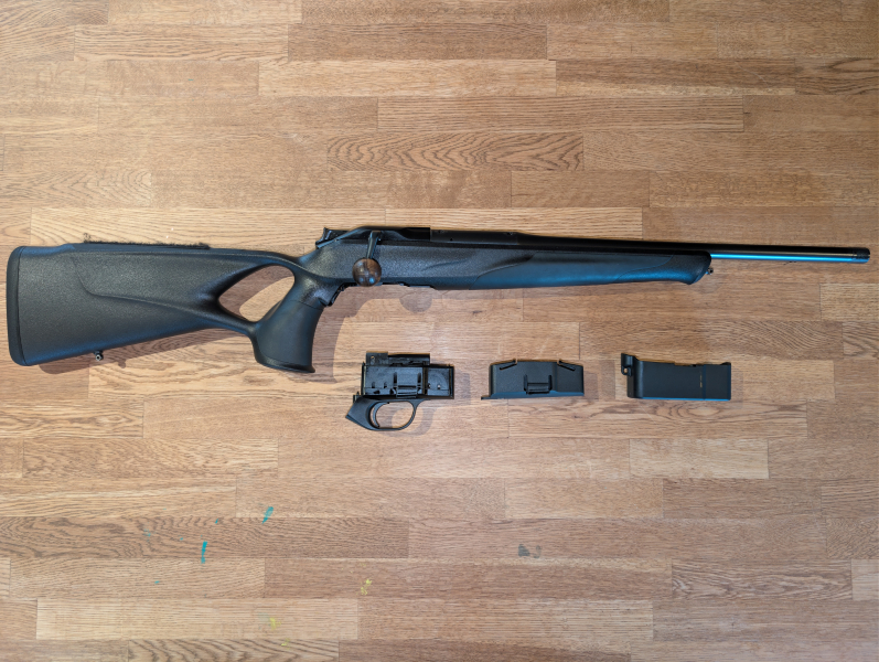 Gebrauchte Repetierbüchse Blaser R8 Professional Success im Kaliber .308 mit einem 47 cm langen Standard-Lauf und M15x1 Mündungsgewinde in schwarzbraun mit iC-Handspannung.