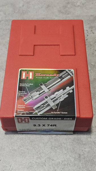 Zum Verkauf steht ein neuwertiger, zweiteiliger Hornady Custom Grade Matrizensatz für das Kaliber 9,3x74R.