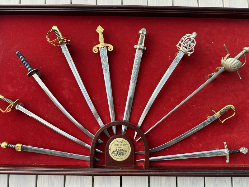Verkauft wird diese Miniatursammlung „Schwerter aus 2000 Jahren“. Die Sammlung ist in einem allgemein guten Zustand und vollständig.