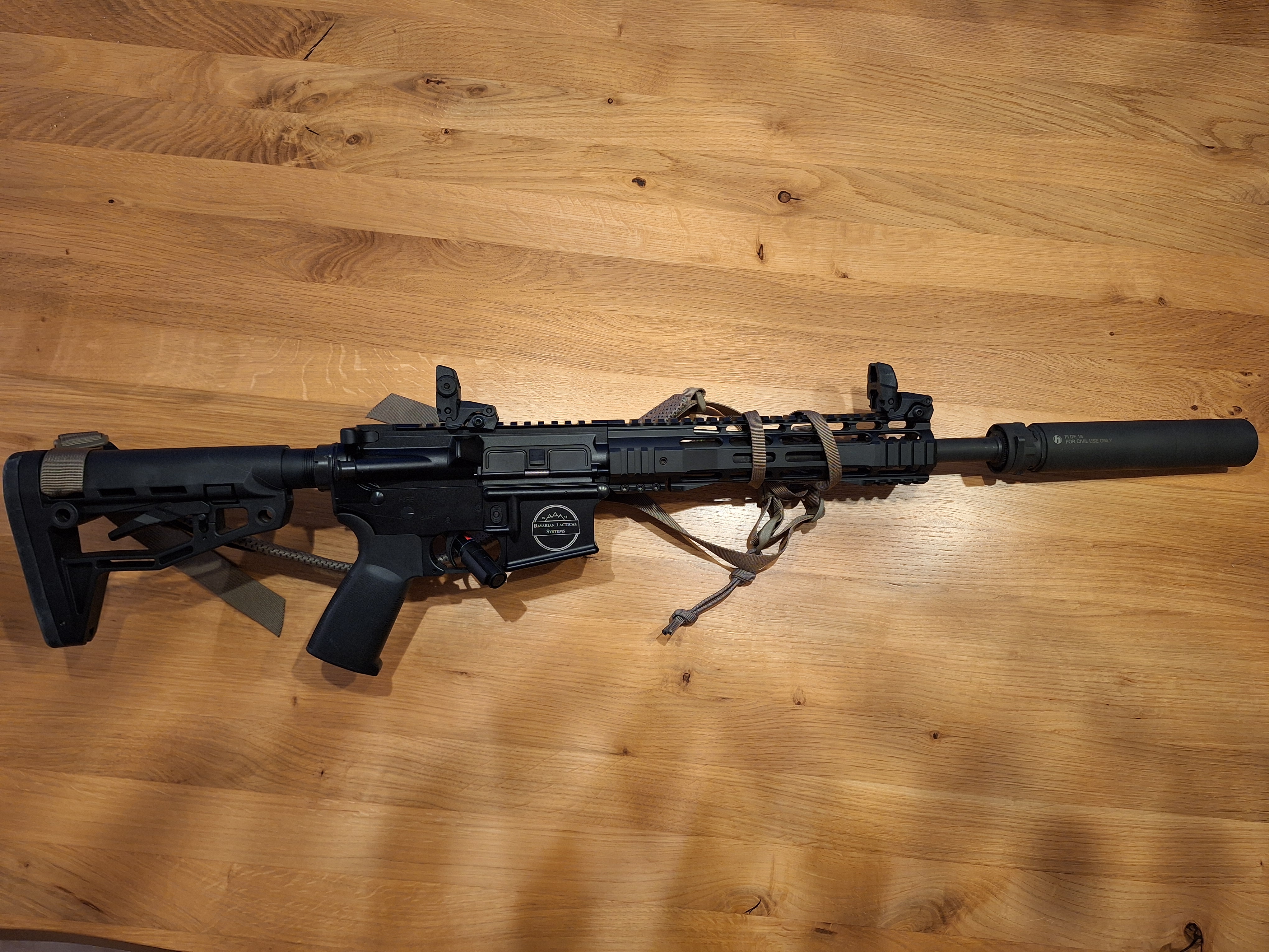 Zum Verkauf steht eine AR15 von BTS im Kaliber .300 Blackout mit 10,5 Zoll Lauf, inklusive ASE Utra Jet-Z Compact Schalldämpfer.