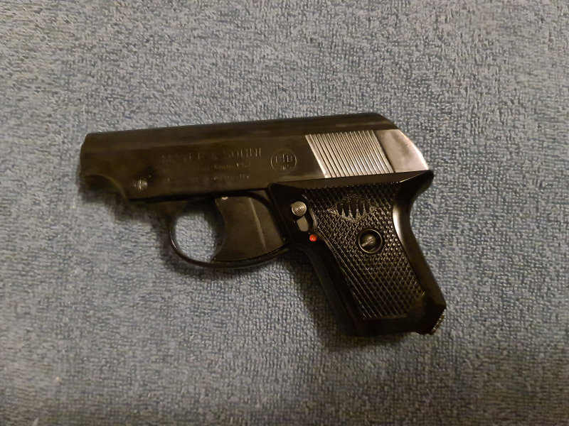 Es handelt sich hierbei um eine voll funktionstüchtige Mayer & Söhne Mod. G3 Start-Pistole/Gaspistole, Kal.6mm Flobert , PTB 165. Beste "Made in Germany" Qualität welche heute nicht mehr hergestellt wird. Klein handlich aber auch sehr laut und robust. Kenner wissen bescheid, sehr zuverlässig und stabil. Die Pistole hat einen integrierten Abschussbecher für Pyromunition bis 15mm. Diese Waffe befindet sich in einem sehr GUTEN ZUSTAND. Die Brünierung ist hochglänzend und sehr gut erhalten. Dieses Modell wurden von 1976 bis 1981 gebaut. In der PTB Liste wird dieses Model mit dem Hersteller Mayer & Riem geführt. Diese Waffe muss also eine frühe Fertigung sein, als der Teil der Firma noch nicht zu Mayer & Riem übergegangen war. Also in jedem Fall sammelwürdig.
