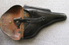 Biete hier diese originale schwarze Polizei-Koffertasche für eine Pistole 08 an, rückseitig mit dem Herstellerstempel: „A. Fischer, Berlin C2 1939“, sowie einer eingeschlagenen 4stelligen Seriennummer, nach dem Krieg auf das norwegische Lochkoppel-System umgebaut, und später alle Tragevorrichtungen wieder entfernt. Der Verschlussriemen und der Zugriemen wurden zusätzlich angenietet. Insgesamt sehr guter Zustand, das Leder ist noch schön weich, auch die Nähte sind in Ordnung. Seitlich unten einmal nachgenäht. Fragen hierzu gerne per email, geringe Farbabweichungen durch das Licht sind möglich, allen Bietern viel Erfolg !