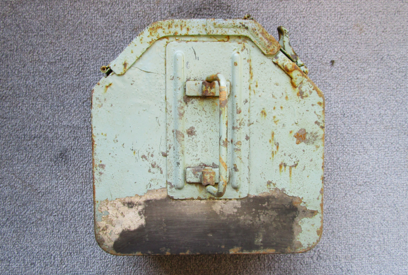 Biete hier diesen originalen Patronenkasten 36 für das MG34 oder 42 an, er wurde so in Fahrzeugen und Panzern eingesetzt, mit einem Fassungsvermögen von 150 gegurteten Patronen im Kaliber 8x57, mit Herstellerstempel der Firma HASAG Hugo Schneider AG in Leipzig aus dem Jahre 1940, mit WaA Abnahmestempel, wurde wohl nach dem Krieg schon einmal überlackiert, ansonsten guter gebrauchter Zustand, ohne Beschädigungen, Größe circa 20x20x8,5cm, Fragen hierzu gerne per email, allen Bietern viel Erfolg !