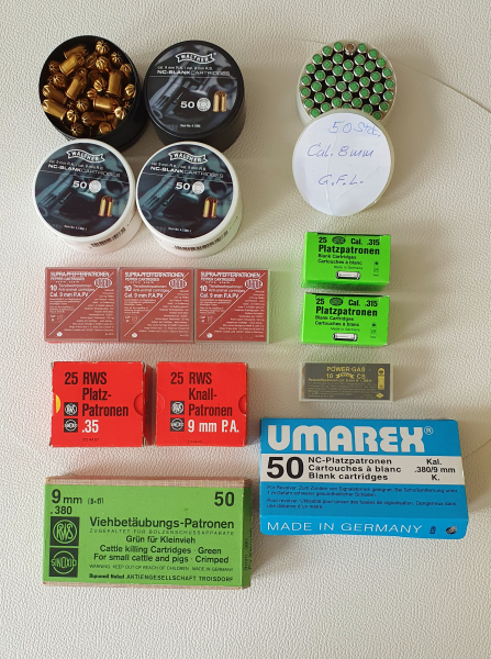 Biete hier ein Konvolut an Platz-und Gaspatronen verschiedener Hersteller und Kaliber an.