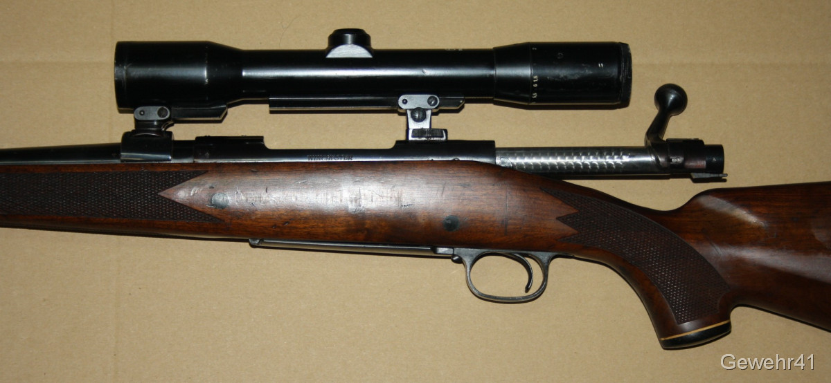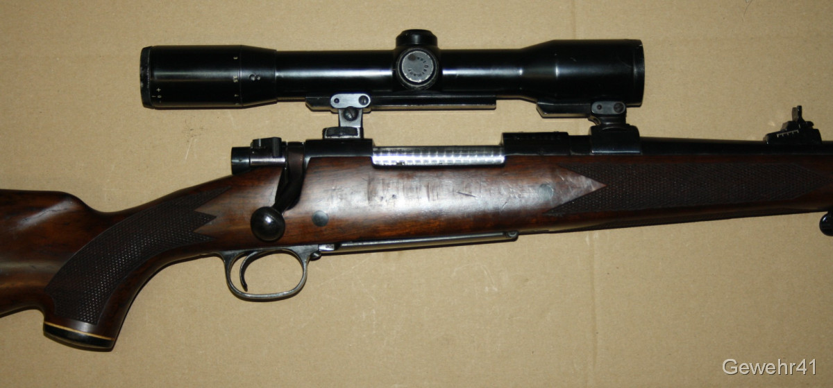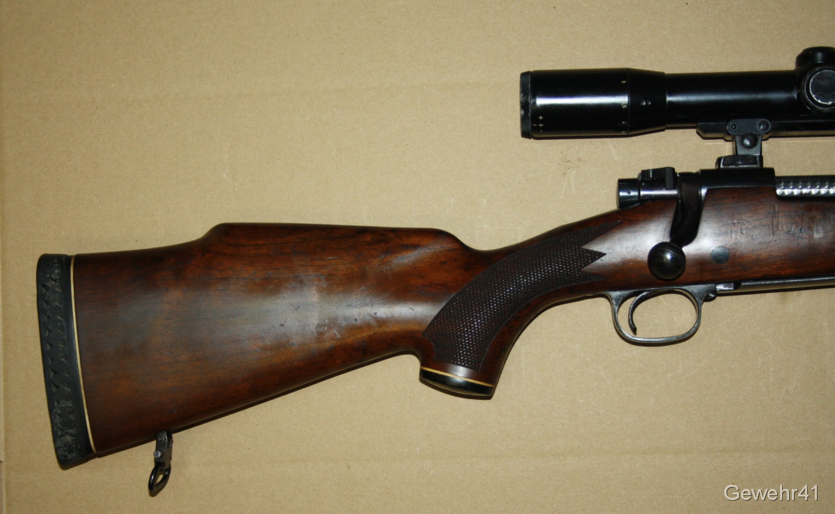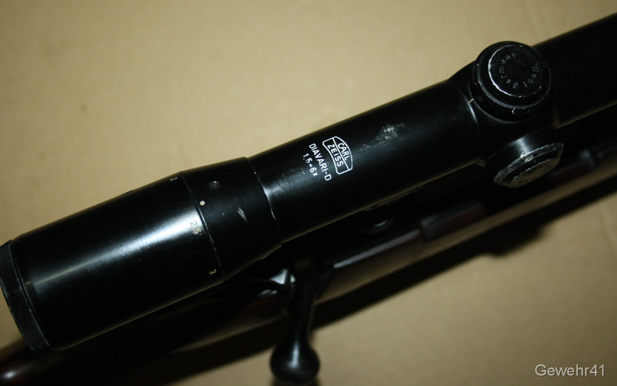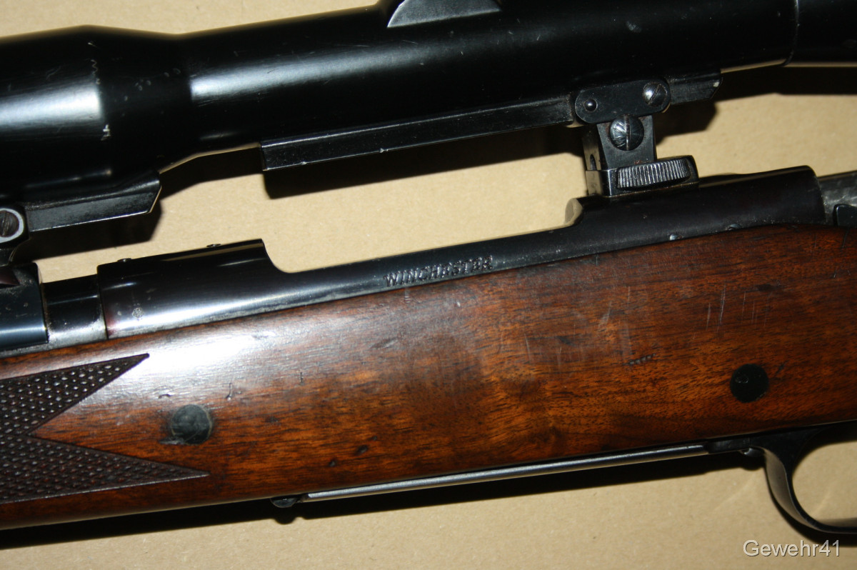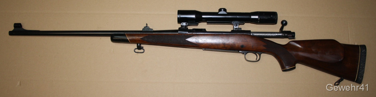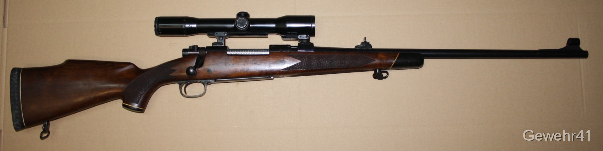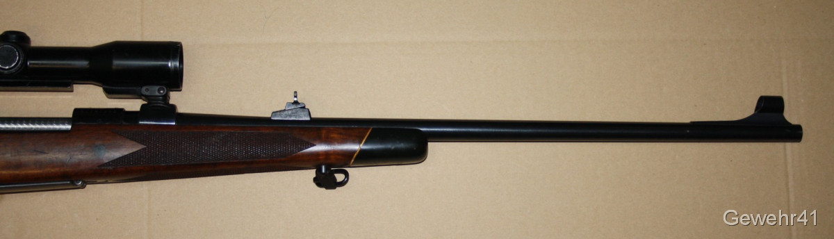 Sie bieten auf diese Winchester 70 im starken Kaliber .300 Win.Mag. mit montiertem ZF Zeiss Diavari-D 1,5-6x. Die Repetierbüchse ist im schönen Zustand und hat nur leichte Gebrauchsspuren. Lauf und Funktion einwandfrei. Lauflänge 59cm, Schaftlänge 34cm, Gesamtlänge 112,5cm.