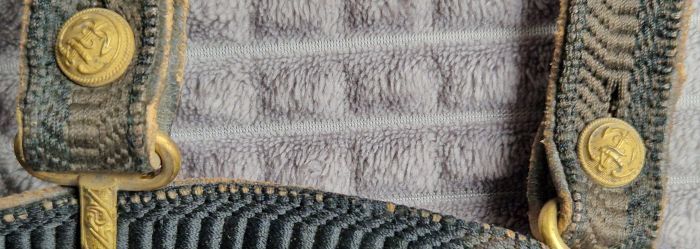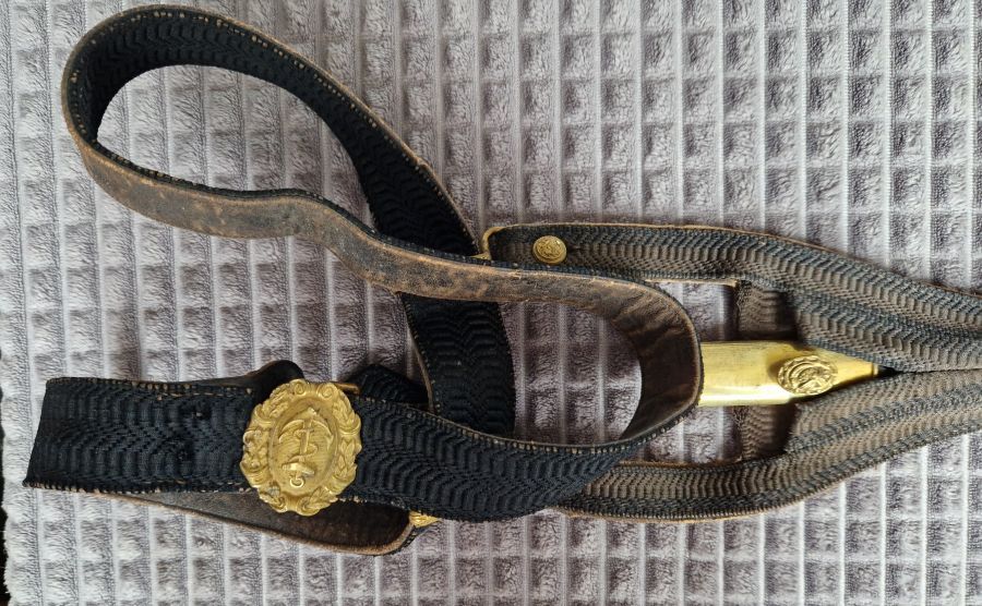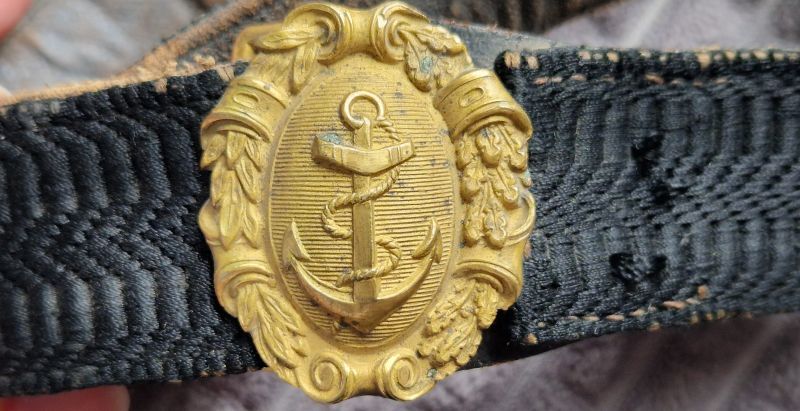 Tressengehänge bzw. Gurt mit Marineschließe sowie zwei Marineknöpfe.