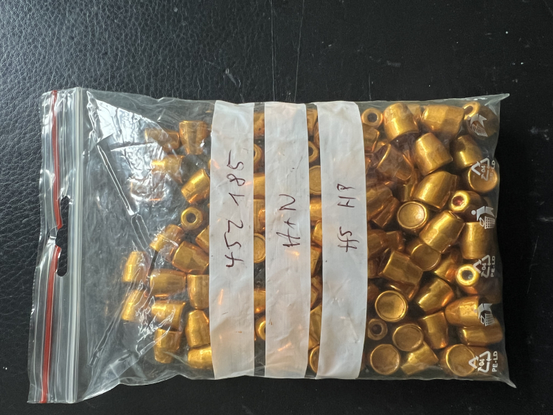 Aus Altersgründen gebe ich den Schiesssport und das Wiederladen auf und verkaufe meine Restbestände. Hier 110 St. Geschosse der Firma Haendler & Natermann im Cal. 45 ACP mit 185 grain HS/HP