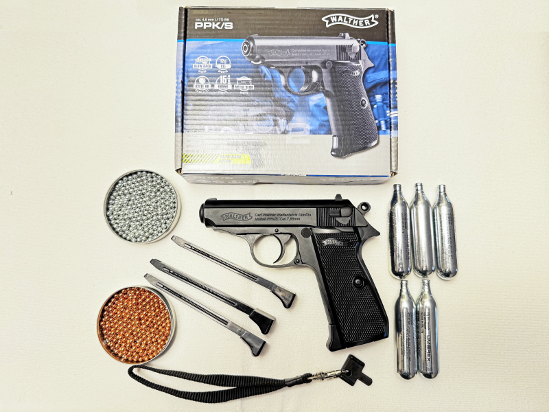 Wegen Hobbyauflösung zu verkaufen Walther PPK/S mit Blow Back System CO2, 4,5 mm BB´s Magazin: 15 Schuß Gewicht: ca. 755 Gramm Lauflänge: 90 mm, glatt Energie: 3 Joule Weiters Zubehör: 3 Zusätzliche Ersatzmagazine 5 CO2 Kapseln ca. 100 Stahlkugeln 4,5 mm ca. 100 Kupferkugel 4,5, mm 2 x Inbusschlüssel Beschreibung OVP Zustand neuwertig wurde nur 2 x mit geschossen Verkauf nicht unter 18 Jahre, Altersnachweis (Scan des PA’s) erforderlich ! Hinweis: Da es ein Privatverkauf ist, hat der Käufer keinen Anspruch auf eine Rückgabe, Umtausch oder Garantie !!!