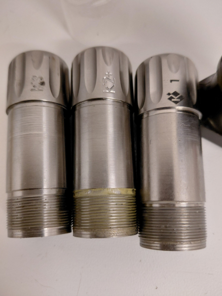 Titan Chokes Kaliber 12, neuwertig, für Krieghoff K 80, Factory Gewinde. Größe 1 = 1/4, Größe 2 = 1/2 - 3/4, Größe 3 = 3/4. Neupreis á 183 €,