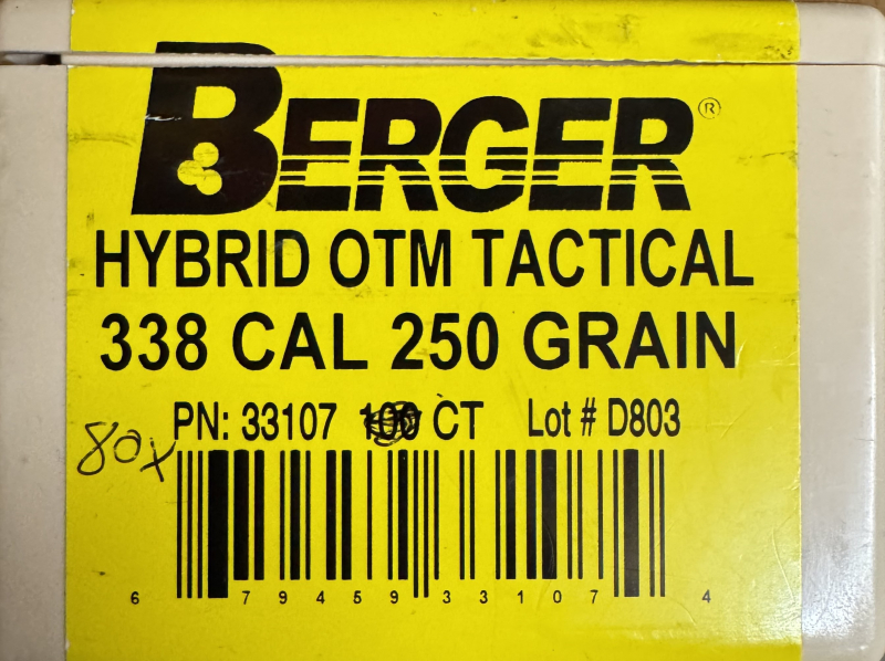 zum Verkauf stehen aus Wiederlader-Nachlass 80 x Geschosse von Berger Hybrid OTM Tactical .338 - 250 grain schwer.