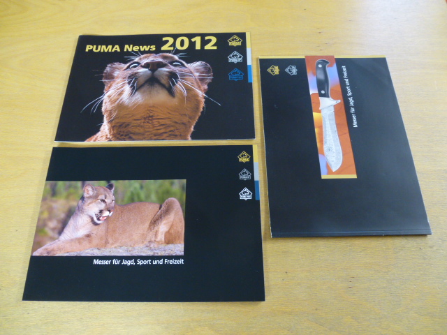 3x Puma - Messer - Katalog.***********Viel altes Material dabei, welches Puma nicht mehr im Programm hat.***********1x 48 Seiten, ohne Jahresangabe, meiner Meinung nach aus 2006. 1x 72 Seiten ohne Jahresangabe, meiner Meinung nach aus 2008. 1x 20 Seiten aus 2012.***********Format der Kataloge: ca. 30 x 21 cm. Sprache der Kataloge: deutsch. Gesamtgewicht: ca. 700 g.***********Zustand: sehr gut, Nichtraucher-Haushalt, keine Tiere.*********Privatverkauf ! Keine Garantie ! Keine Gewährleistung ! Keine Rücknahme !********Kein Verkauf ins Ausland ! No sale abroad !********Kein Versand ins Ausland ! No international shipping !**********Versand erfolgt als Maxi-Brief mit der Post für 3,- EUR oder als DHL-Paket für 8,- EUR. Je nach Wunsch.