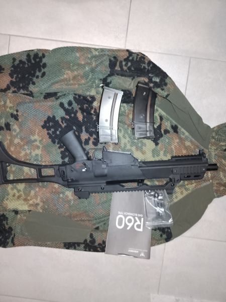 Biete eine G36C GBB gekauft bei Begadi an. Waffe hat viele Stahlteile und auch der Ladespannhebel ist kein Kunststoff! Waffe wurde quasi nicht genutzt nur -Zwei Mal im Keller geschossen. Da ich im Tresor für neue scharfe Waffen Platz benötigt möchte ich diese verkaufen. Zur Waffe selbst gibt es Zwei Magazine und den Originalkarton plus Papiere. Volle Garantie sollte noch vorhanden sein, Waffe und Magazine tadellos und quasi neu. Verkauf an Personen ab 18 Jahren. DHL Versand versichert.