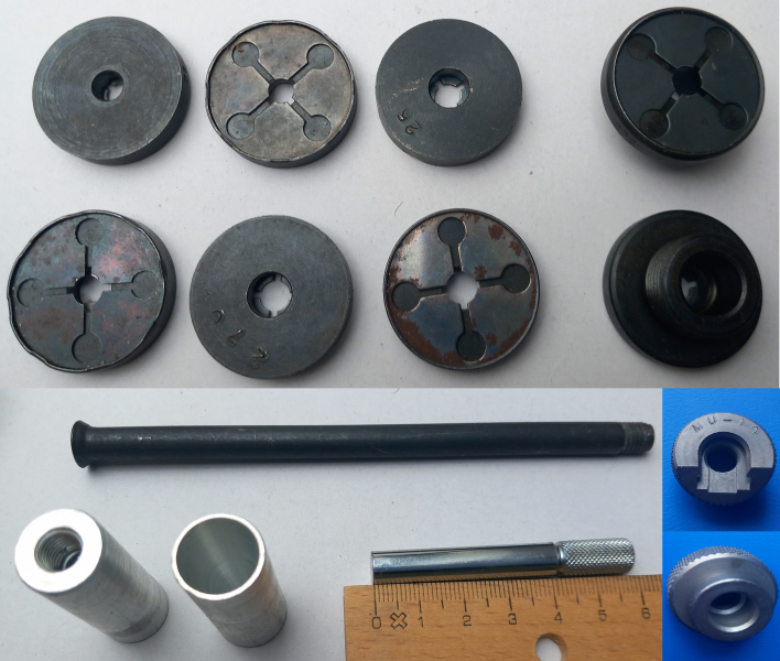 2 Scheiben mit Gewinde in den Kalibern .25 und .27.