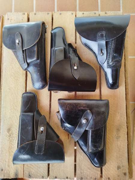 Ich möchte hier fünf Stück gut (teilweise neuwertig) erhaltene Polizei Pistolentaschen versteigern: Oben links eine Tasche für die Walther PP mit zusätzlichen Ösen für Tragevorrichtung mit Karabinerhaken, 60er Jahre, Polizei Marburg in Hessen, keine Stempel, nur handschriftliche Trägernamen. Oben Mitte eine neuwertige, unbenutzte Tasche, auch mit zusätzlichen Ösen, meines Erachtens ebenfalls Walther PP (passt perfekt). Trotz keinerlei Nutzungsspuren, innen eine (vermutlich) Waffennummer 162714. Oben rechts eine nahezu neuwertige Tasche, nur mit Trägernamen KARDE, MAB-D und Walther PP passen perfekt, den minimalen Abdrücken nach aber für die MAB-D. Unten links eine sehr schöne Tasche der Berliner Polizei: ROBERT LARSEN - BERLIN - SW68 - 1953. Aufgrund von Passgenauigkeit und Abdrücken innen, sehr wahrscheinlich für eine FN 10/22. Meines Erachtens könnte diese Tasche noch zu Kriegszeiten hergestellt worden sein. Der Herstellerstempel entspricht nämlich exakt den Stempeln für Taschen der Wehrmacht und Polizei des 3. Reiches - bis auf die Jahreszahl. Mir scheint es aber so, dass diese Jahreszahl 1953 nicht Bestandteil des Herstellerstempels ist, sondern zusätzlich (nachträglich?) angebracht wurde. Also wurden möglicherweise Lagerbestände nach dem Krieg aufgebraucht? An der gleichen Stelle, nur von innen, ein farbloser Prägestempel: P.P. Bln. G.B. Und zuletzt unten rechts eine gebrauchte Tasche CARL BUSSE - Mainz - 1951 und verdeckt noch einmal Pol 1952 sowie innen Trägername Heinr. Sommer. Auch wenn es nicht zur schlanken Erscheinung der Waffe passt, dürfte diese Tasche sicher für eine MAB-D gefertigt worden sein. Es handelt sich hier um ein Angebot von Privat. Gewährleistung, Umtausch, Rücktritt vom Kauf und dergleichen sind in jedem Fall ausgeschlossen. Mit Ihrem Gebot erklären Sie sich ausdrücklich mit diesen Bedingungen einverstanden und erkennen diese an. Der Versand erfolgt versichert mit DHL, das Versandrisiko trägt der Käufer. Käufer aus dem Ausland tragen alle zusätzlich entstehenden Kosten oder Gebühren (z.B. höheres Porto) und sind selber dafür verantwortlich, ob eine Lieferung an den Bestimmungsort möglich und rechtens ist. Bilder folgen