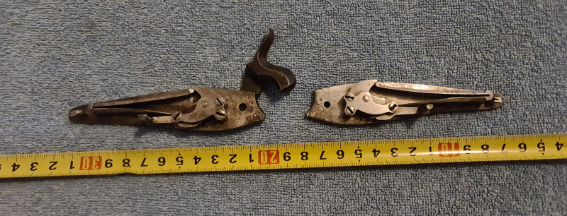 Zum Verkauf stehen zwei voll funktionsfähige Perkussionsschlosse ( rechts und links) aus Nachlass eines Büchsenmachers. Beim rechten Schloss fehlt leider der Hahn. Beide Schlosse lassen sich spannen und abschlagen. Die Federn sind noch schön stramm. Sie stammen aus einer doppelläufigen Perkussionsbüchse/-Flinte oder Querflinte. Bei den beiden Back-Action Locks ist die gesamte Schlosskonstruktion natürlich komplett aus Stahl. Innen in der Schlossplatte läßt sich die Prägung 570 an beiden Schlössern erkennen. Außerdem ist in beiden Schlössern ein runder Kreis eingeprägt (siehe Fotos). Diese Prägung ist ein spezifisches Herstellerzeichen, das im Nationalen