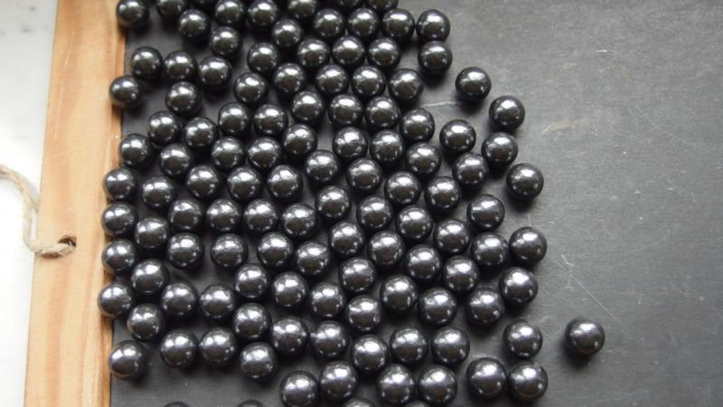 Die Kugeln sind mit etwas Graphit und Wachs behandelt. Dadurch glänzen sie sehr schön und man bekommt keine allzu schwarze Finger durch das Graphit.