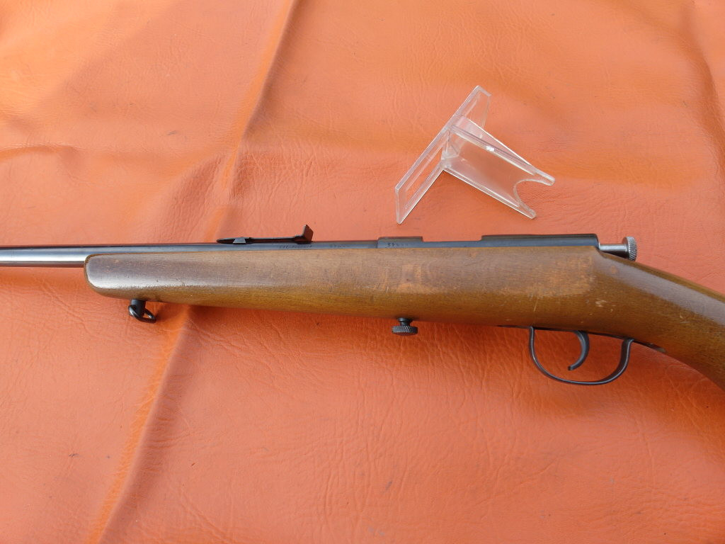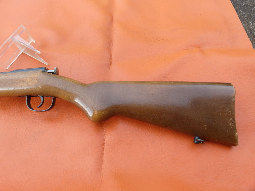 Lauflänge: 580 mm, Einzellader mit Zylinderberschluß, die Stahlteile brüniert, Standvisier, Schaft aus Buchenholz mit Pistolengriff, Riemenbügel, gebraucht, guter Erhaltungszustand, nur minimaler Lackabrieb am Schaft, kann mit nur einer Schraube zerlegt werden