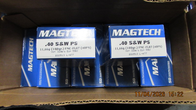 Sie bieten auf ein Munitionskonvolut im Kaliber .40S&W; der Lieferumfang entspricht der Abbildung. Es ist möglich, dass vereinzelte Patronen bereits Lagerspuren haben, einzelne Packungen sind nicht voll und wir können auch nicht ausschließen, dass zwischendurch eine Patrone mit einem anderen Geschoss/Körnung dazwischen ist als auf der Packung steht. Ferner gehen Sie bitte davon aus, dass nicht alle Patronen trotz identischer Verpackung aus dem gleichen Los stammen. Bitte keine Nachfragen, welche Packungen voll sind und welche angebrochen; wer das wissen möchte, kann gerne gucken kommen.