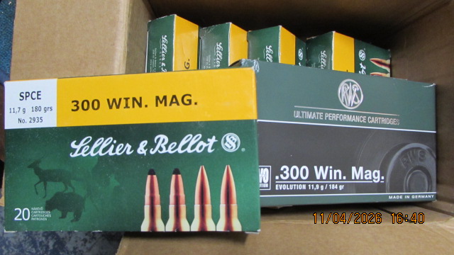 Sie bieten auf ein Munitionskonvolut im Kaliber .300WinMag; der Lieferumfang entspricht der Abbildung. Es ist möglich, dass vereinzelte Patronen bereits Lagerspuren haben, einzelne Packungen sind nicht voll und wir können auch nicht ausschließen, dass zwischendurch eine Patrone mit einem anderen Geschoss/Körnung dazwischen ist als auf der Packung steht. Bitte keine Nachfragen, welche Packungen voll sind und welche angebrochen; wer das wissen möchte, kann gerne gucken kommen.