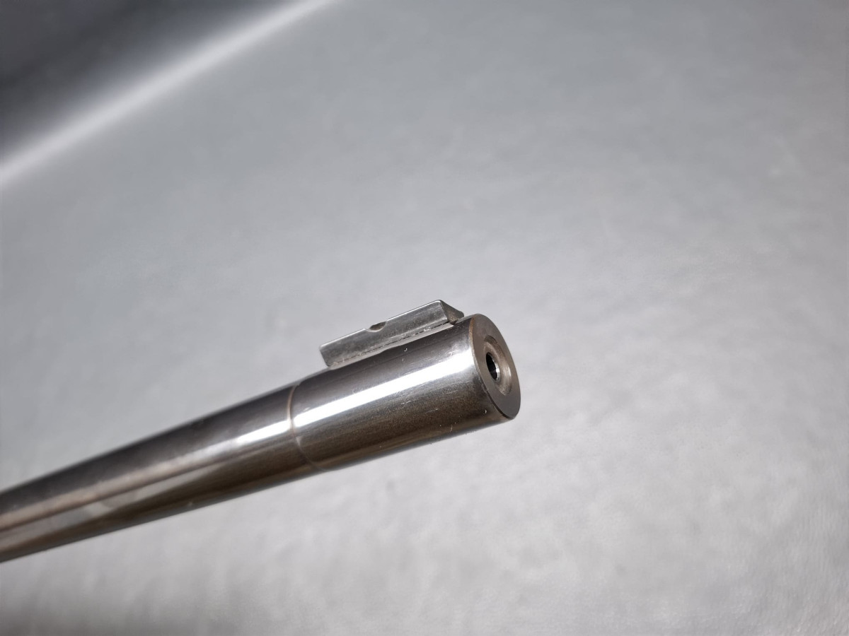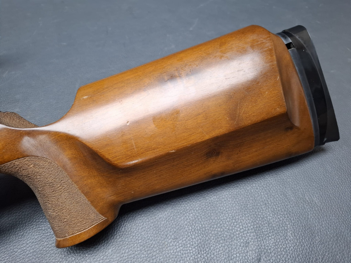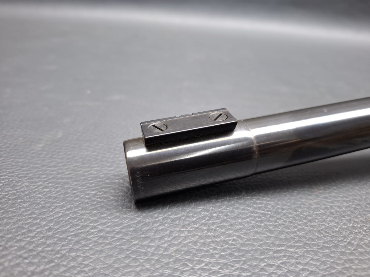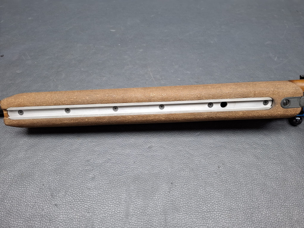 21 mm dicker Matchlauf, 11 mm Schiene Zylinderverschluss mit Flügelsicherung, einstellbarer Matchabzug. Nussbaumschaft mit verstellbarer Schaftkappe, 11mm UIT Schiene Lauf sehr gut, Brünierung 96%, Schaft mit Gebrauchsspuren, Gebrauchtwaffe